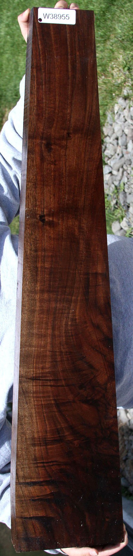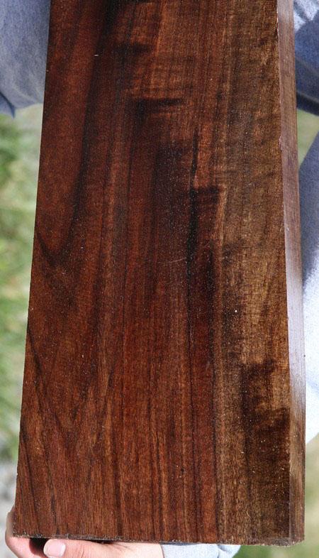 Claro Walnut Burl (Juglans hindsi) is a unique Walnut species that grows right around the area where Cook Woods is located. Combining beautiful violet and brownish black streaks and wild figured burl eyes, Claro walnut burl is favored for high end veneer for cars, jets, turned articles, and exquisite jewelry boxes. Most of the supply originates in orchards as either production walnut trees or wind row trees to slow the wind and show property lines. Claro Walnut Burl is a beautiful wood that is in high demand and short supply. It is dense but works and finishes well with the use of a grain sealer.These beautiful blanks have all been aged for six years and are between 4 and 10% moisture with most being between 6 and 8 percent.There is some crotch figure at one end. Incredible color and figure.