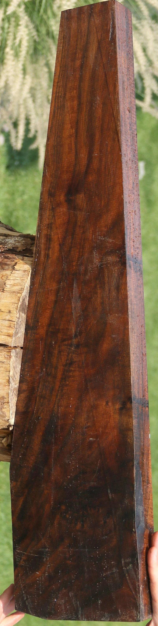 This piece was aged slowly to perfection over 7 years. This piece has lots of fiddleback and deep colored stripes with figure. There is a clusterburl in the buttstock area. Aged slowly to perfection over 7 years. Dry and ready to use!